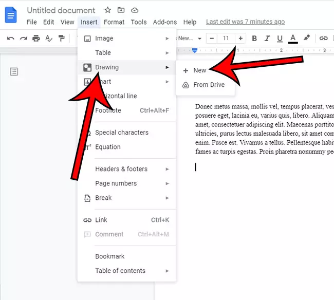 Dette er sannsynligvis den mest kompliserte måten å legge til en linje i Google Dokumenter på, men det kan være effektivt, og det gir deg noen ekstra alternativer fordi det teknisk sett vil være en tegning.
