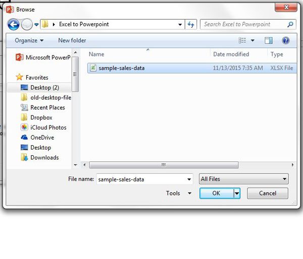 Trinn 6: Finn Excel-regnearket du vil legge til i lysbildefremvisningen, og klikk deretter påOKknapp.