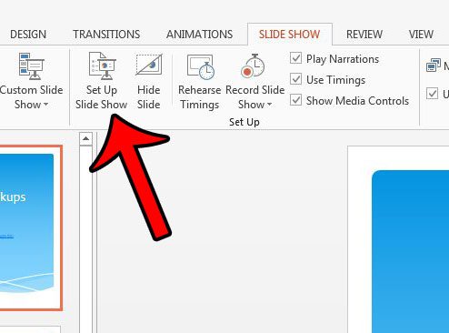 Trinn 6: Klikk påSett opp lysbildefremvisningknappen iSett oppdelen av båndet.