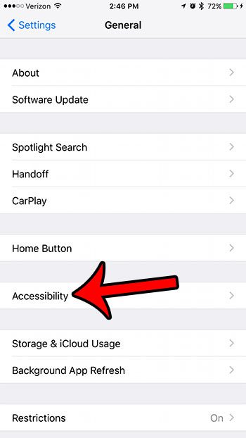 Trinn 2: Rull ned og velgTilgjengelighetalternativ.