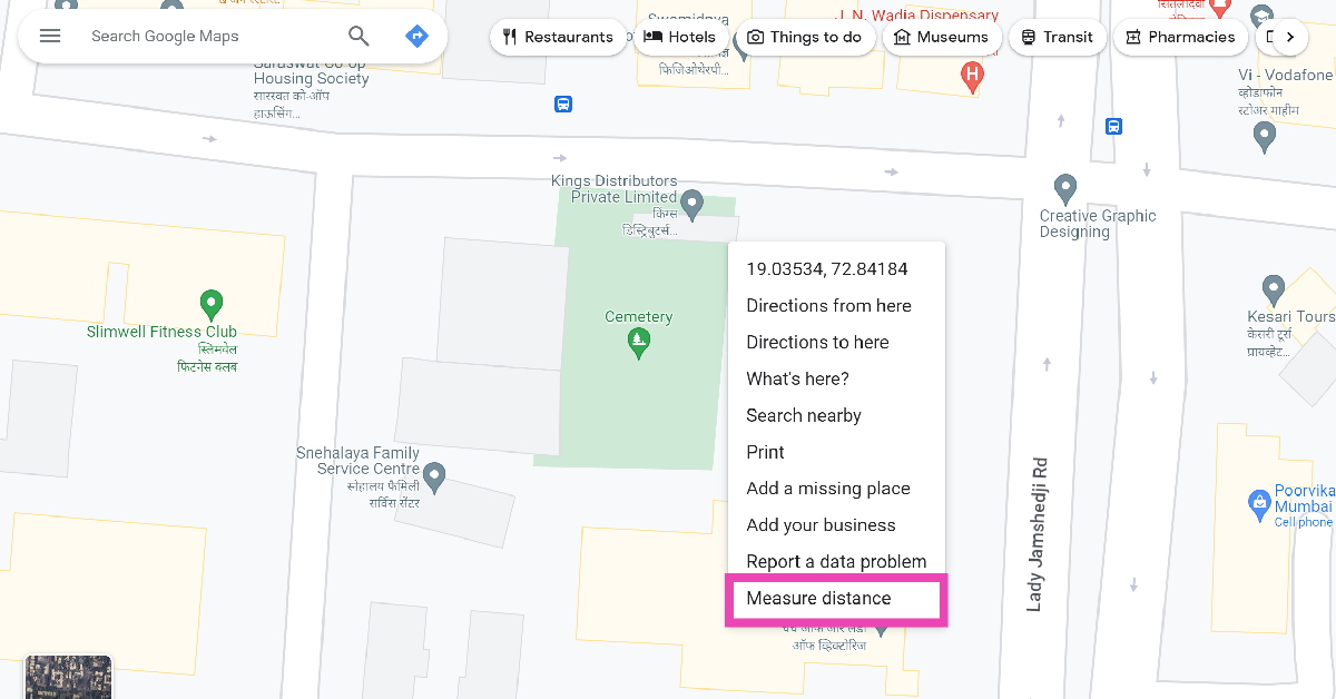 Hvordan måler jeg avstanden mellom to tilfeldige punkter i Google Maps-appen?