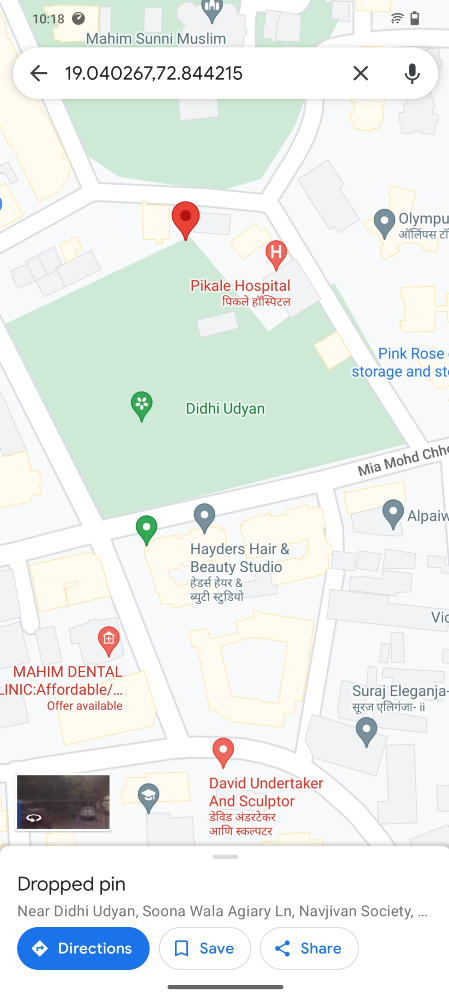 For å lagre et tilfeldig, navnløst sted på Google Maps, trykk og hold det på kartet og trykkSpare.