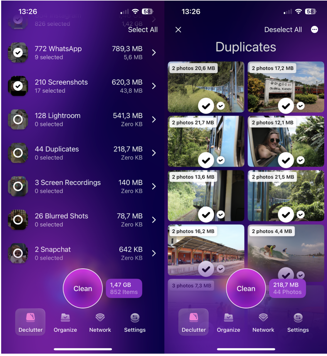Ved å rydde opp i bildebiblioteket ditt hjelper CleanMy®Phone med å frigjøre verdifull lagring uten å påvirke de installerte appene eller dataene deres. Slik fungerer det: