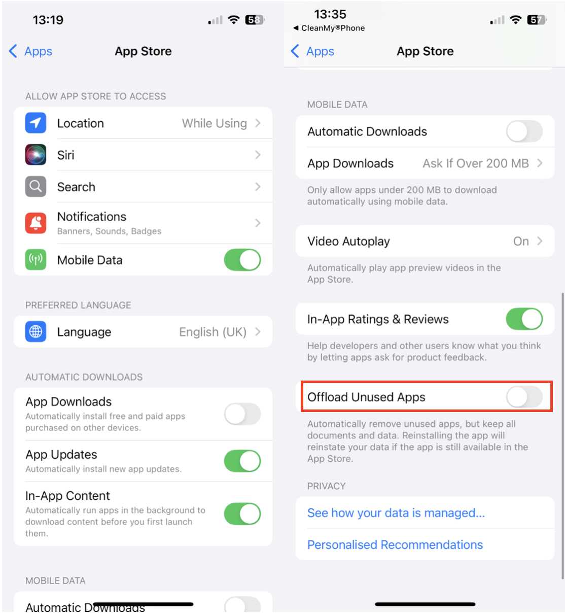 Men automatisk avlasting er ikke ideelt for alle. Hvis du er avhengig av reise-, bank- eller jobbapper eller ikke alltid har tilgang til Wi-Fi, kan det være lurt å deaktivere denne funksjonen og laste ned apper manuelt i stedet. På denne måten bestemmer du hvilke apper som skal fjernes mens du holder viktige tilgjengelige.