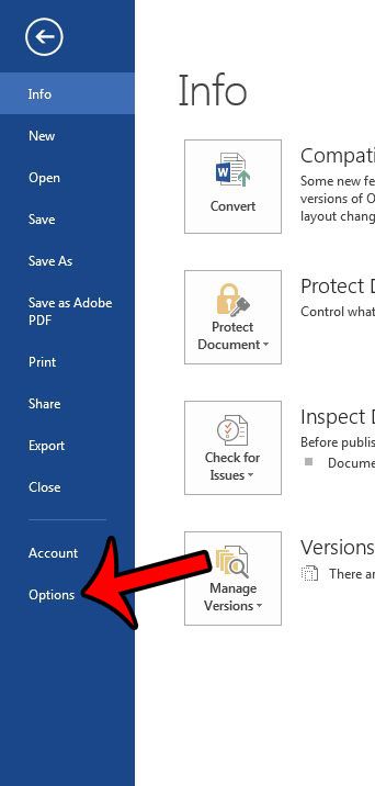Trinn 3: Klikk påAlternativerknappen i kolonnen til venstre i vinduet.