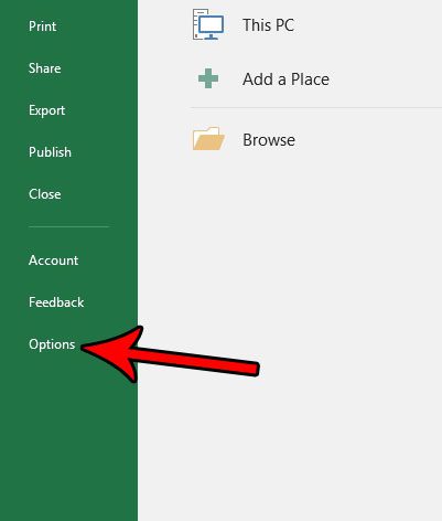 Trinn 4: VelgEnkel tilgangfanen i venstre kolonne iExcel-alternativervindu.