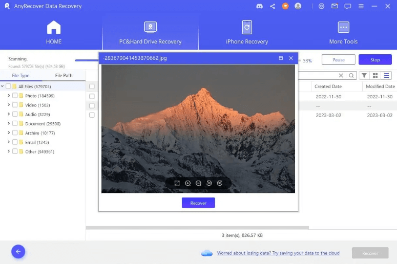 Hvis du har slettet bildene fra Google Photos og du også har slettet bildene lastet opp til Google Photos fra datamaskinen, kan du gjenopprette de tapte bildene på PC-en med tillatelse fra AnyRecover. Det er et oppsiktsvekkende datagjenopprettingsverktøy som gjør det enkelt å få tilbake tapte data eller bilder uten å påvirke datakvaliteten.