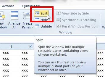 Men det er et annet alternativ som deler skjermen, og holder en fast gruppe med rader øverst i vinduet mens du ruller til bunnen.
