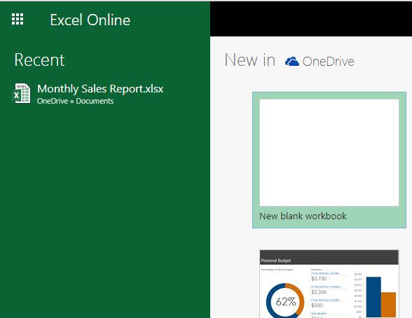 Trinn 1: Logg på Excel Online påhttps://office.live.com/start/Excel.aspx. Hvis du ikke allerede er logget på en Microsoft-konto, vil du bli bedt om å gjøre det.