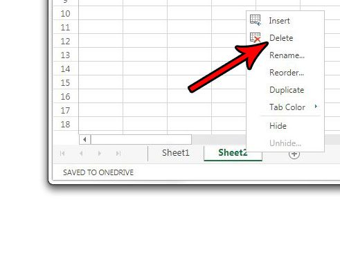 Trinn 4: Høyreklikk på regnearkfanen du ønsker å slette, og velg deretterSlettalternativ.