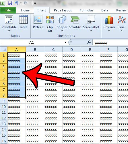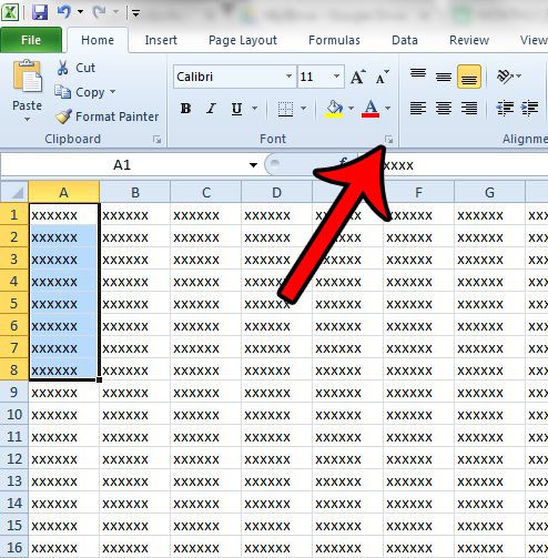 Metoden for å legge til gjennomstreking i tekst i Excel 2010 er veldig lik. Trinnene nedenfor vil lede deg gjennom det.
