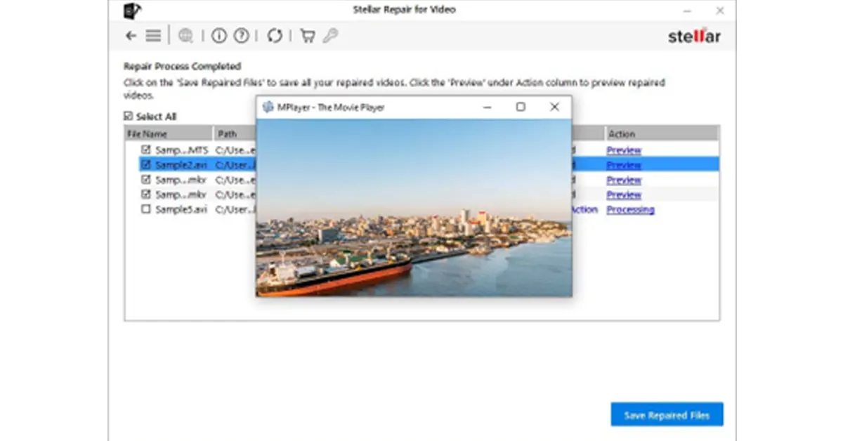 - Når reparasjonsprosessen er ferdig, klikker duForhåndsvisningfor å se de reparerte MP4-videoene. Klikk deretterSpare Reparert Filerfor å lagre videoene på ønsket sted.