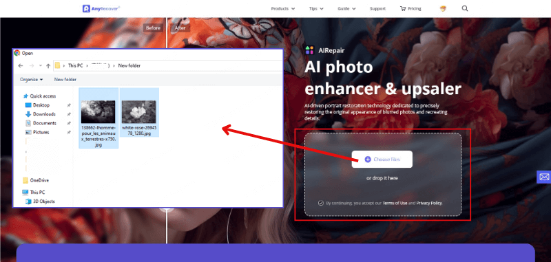 Mange fotorestaureringsverktøy tilgjengelig på markedet kan måle dine behov. Hvis du leter etter en bedreapp for å reparere gamle bilder, det ville være AIRepair Online, som er et dedikert verktøy som lar brukere reparere gamle bilder ved å forbedre bildekvaliteten og fargelegge bilder, noe som gjør dine elskede minner levende igjen i det nye livet.