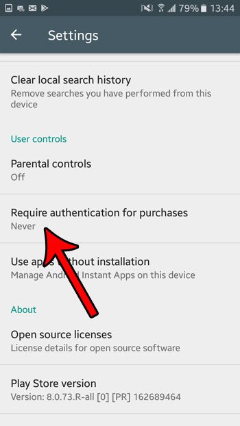 Ved å slå på denne innstillingen vil du tvinge Google Play-butikken til å kreve autentisering før du kan kjøpe noe på enheten din. Dette er nyttig hvis du ønsker å blokkere andre, for eksempel barn, fra å foreta kjøp gjennom Play-butikken på enheten.