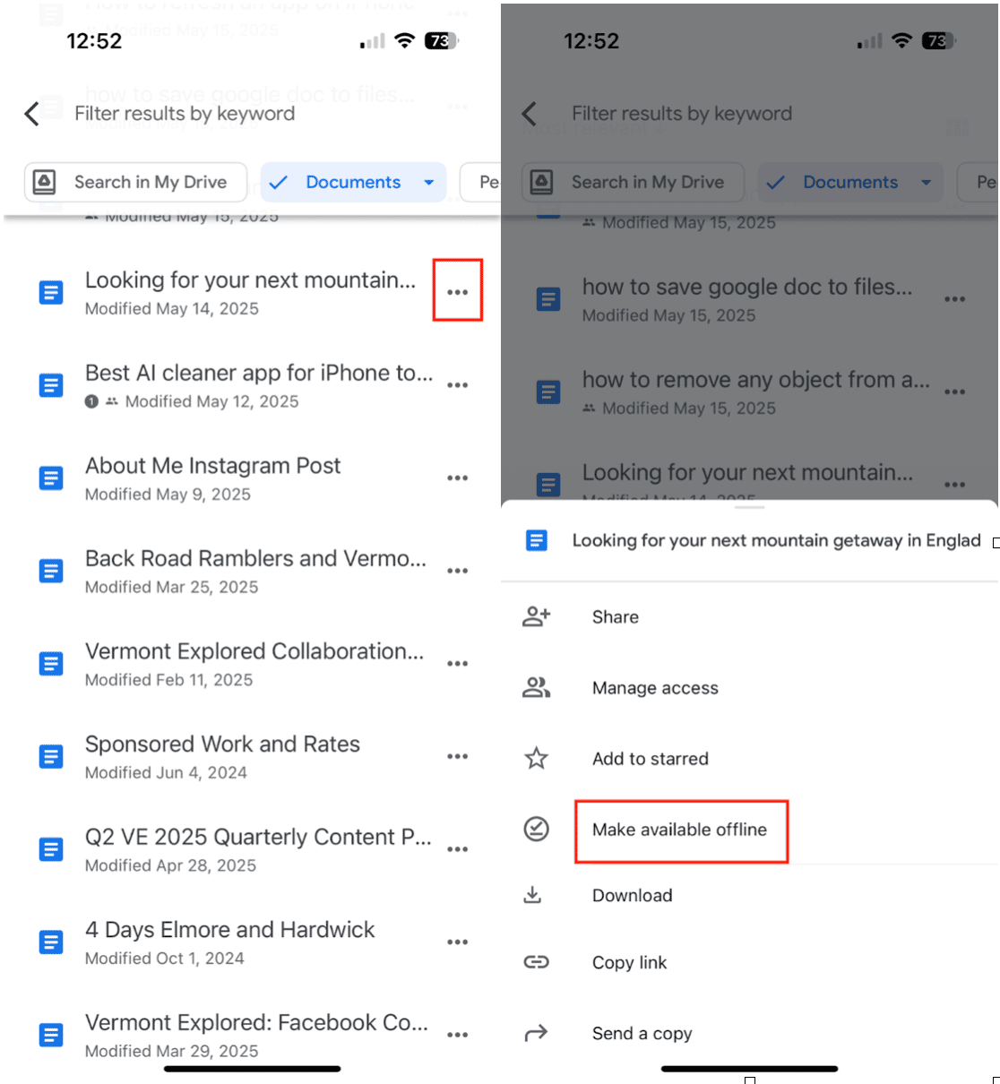 Slik lagrer du et Google-dokument fra Google Disk til Filer-appen på iPhone: