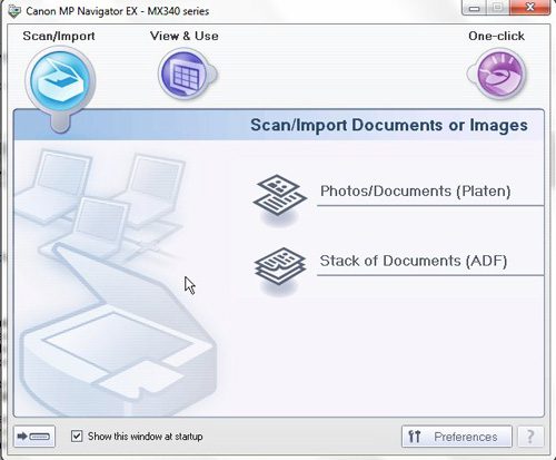 Programmet heter Canon MP Navigator EX, og gjeldende versjon, per 10. april 2012, er versjon 3.14.