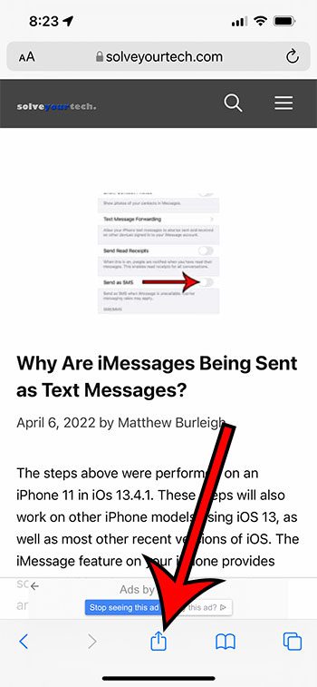 I stedet for å prøve å beskrive hva du fant, kan vår iPhone-veiledning for hvordan du sender en lenke i en tekstmelding vise deg en enkel måte å dele en kobling til nettsiden på via tekstmelding.