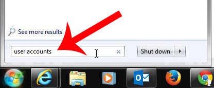 Trinn 2: Skriv "brukerkontoer” inn i søkefeltet nederst på Start-menyen, og trykk deretterGåpå tastaturet ditt.