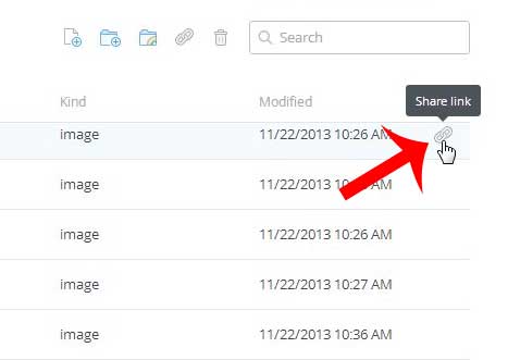 Trinn 4: Hold markøren over filen, og klikk deretter på lenkeikonet til høyre på linjen.