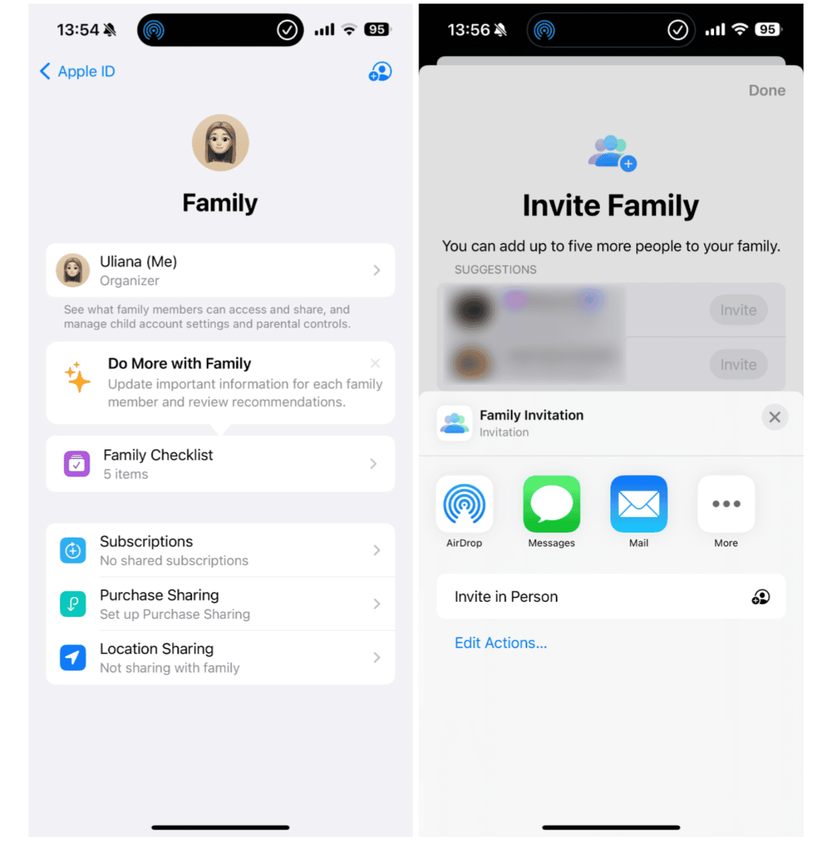 - Følg instruksjonene på skjermen for å legge til familiemedlemmer og sende invitasjoner.