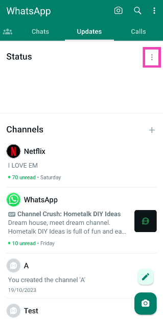 Trinn 6:Åpne WhatsApp-statusoppdateringen du vil dele på Instagram og trykk påellipserøverst til høyre på skjermen.
