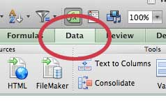 Trinn 3: Klikk påDatafanen øverst i vinduet.