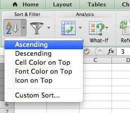 Heldigvis kan du sortere dataene dine i Excel for Mac 2011, slik at du kan organisere data alfabetisk, numerisk eller til og med etter celle- eller skriftfarge.