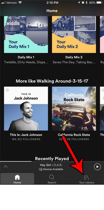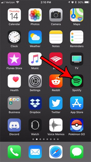 Vår veiledning nedenfor vil vise deg hvordan du oppnår dette er Spotify-appen på din iPhone.
