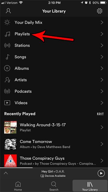 Standardsortering for disse spillelistene kan være litt vanskelig å navigere, så du kan være på utkikk etter en måte å sortere Spotify-spillelister etter navn på iPhone 7.