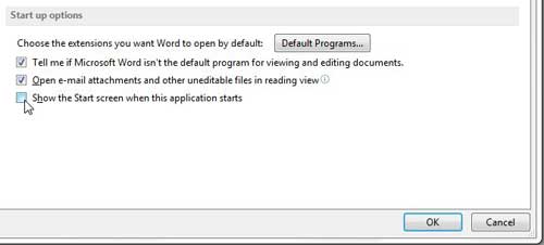 Vår veiledning om hvordan du slutter å vise startskjermen i Word 2013 fortsetter nedenfor med informasjon om hvordan du kan justere dette alternativet.