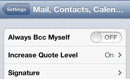 Du kan stoppe den automatiske BCC-funksjonen på en iPhone 5 ved å gå tilInnstillinger > E-post >og deaktivereAlltid BCC Meg selvalternativ.