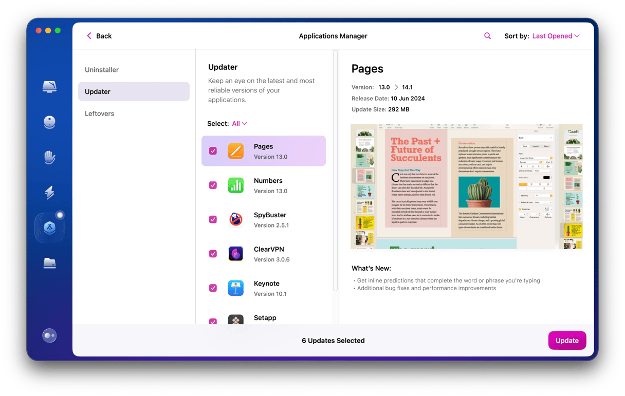 Som nevnt ovenfor er CleanMyMac en fin måte å forhindre automatiske oppdateringer og fjerne uønskede bakgrunnsapper. Den kan også brukes på en omvendt måte - for å oppdatere alle applikasjonene dine.