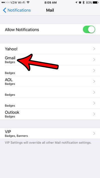 Du kan fortsette å lese for ytterligere diskusjon om arbeid med e-postvarsler på iPhone hvis du ønsker å tilpasse varslingstypene du mottar på enheten din.