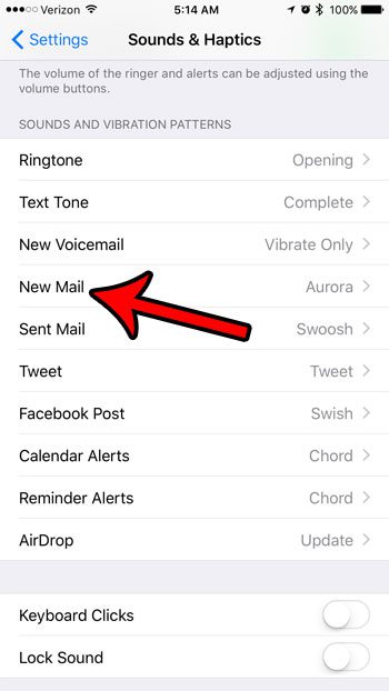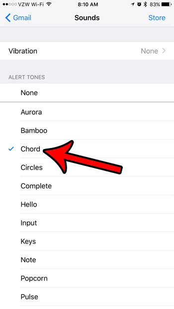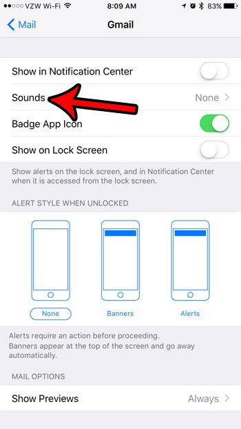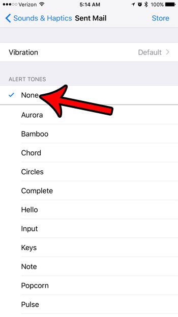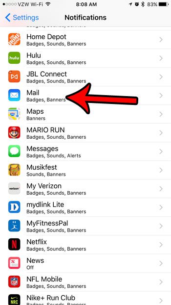 Guiden vår fortsetter nedenfor med mer informasjon om hvordan du slår av iPhone-e-postlyder, inkludert bilder av disse trinnene.