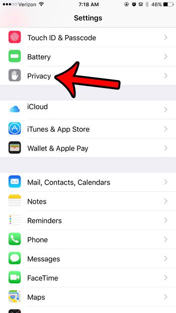 Trinn 2: Rull ned og velgPrivatlivalternativ.