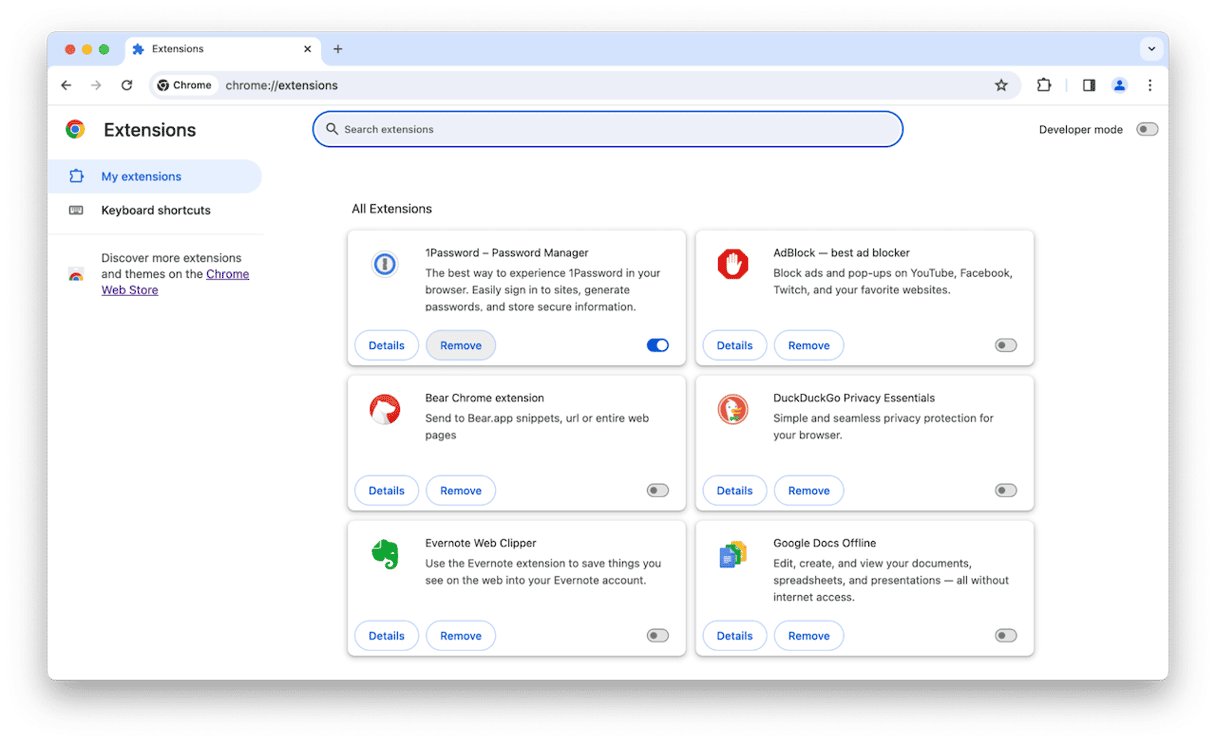 Trinnene for å fjerne 1Password-nettleserutvidelsen fra andre nettlesere er like.