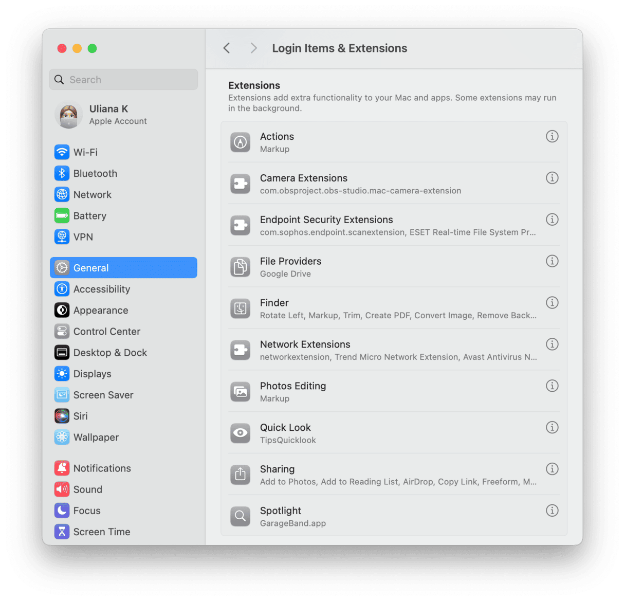 Gå til Systeminnstillinger > Generelt > Påloggingselementer og utvidelser.