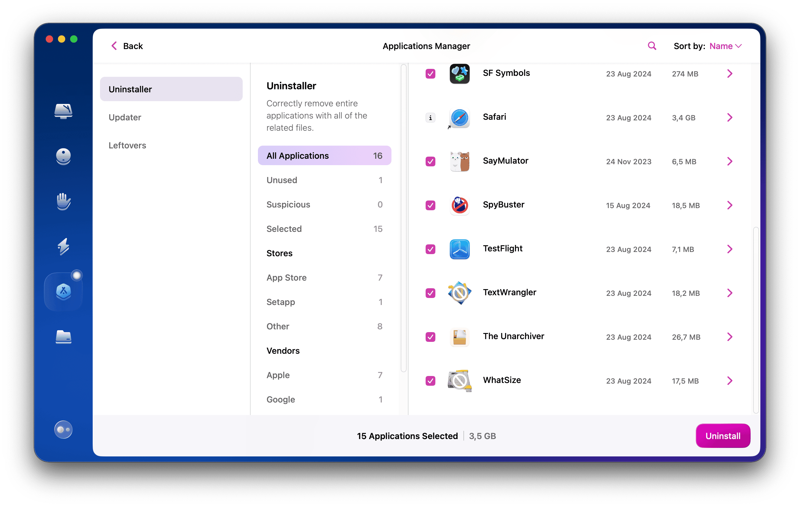 I stedet for å lete gjennom biblioteksmapper manuelt, bruk en dedikert app somCleanMyMac, som kommer med en applikasjonsfunksjon og dets avinstalleringsverktøy. Dette kan raskt og, enda viktigere, finne hver enkelt app-komponent, fra støttefiler, påloggingsagenter og skjulte mapper, og fjerne dem alle på én gang; her er hvordan:
