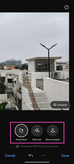 AI Eraser på Oppo bruker eksterne servere for å utføre beregningen og kan derfor ikke fungere uten internettforbindelse.