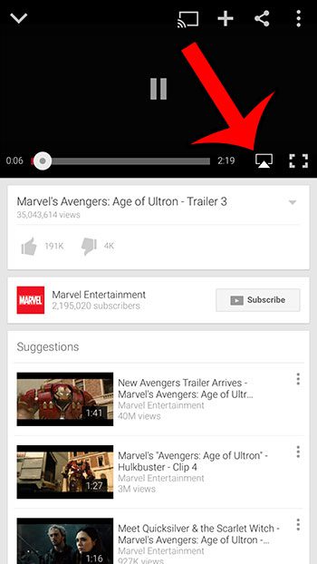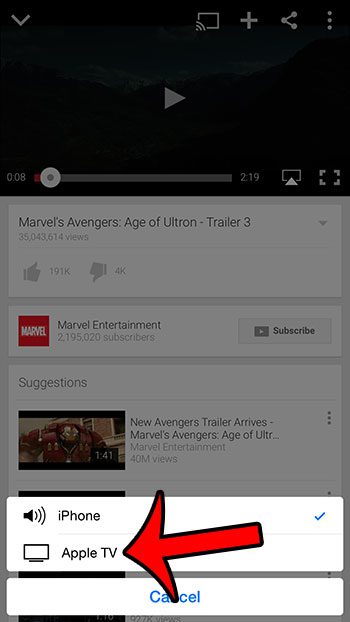 Du vil merke at skjermikonet er blått når videoen spilles av via Apple TV. Du kan trykke på skjermikonet igjen og velge iPhone-alternativet når du ikke lenger ønsker å se YouTube på Apple TV.