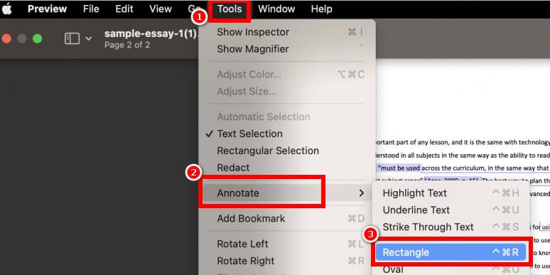 Hvis du er en Mac-bruker, er det et annet valg for deg å hvite ut PDF. Forhåndsvisning på en Mac vil bli brukt i denne metoden, som innebærer å plassere et hvitt rektangel over områdene du ønsker å skjule, på samme måte som maskering med korrigeringstape på papir. Slik kan du gjøre det: