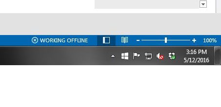 Du kan fortelle at Outlook 2013 er i frakoblet modus fordi det vil siJobber offlinei statuslinjen nederst i vinduet.