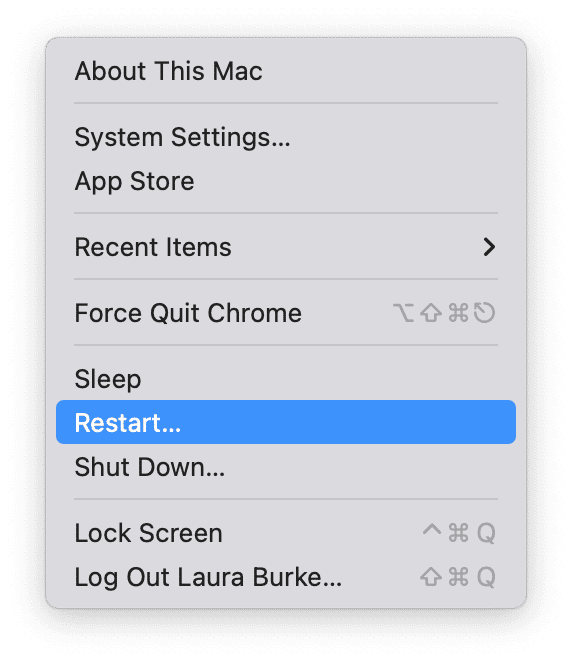 Ja, det eldste trikset i boka fungerer fortsatt. Og når gigabyte teller, er det ingen grunn til ikke å kjøre en rask omstart. Gå til Apple-hovedmenyen og trykk Start på nytt.