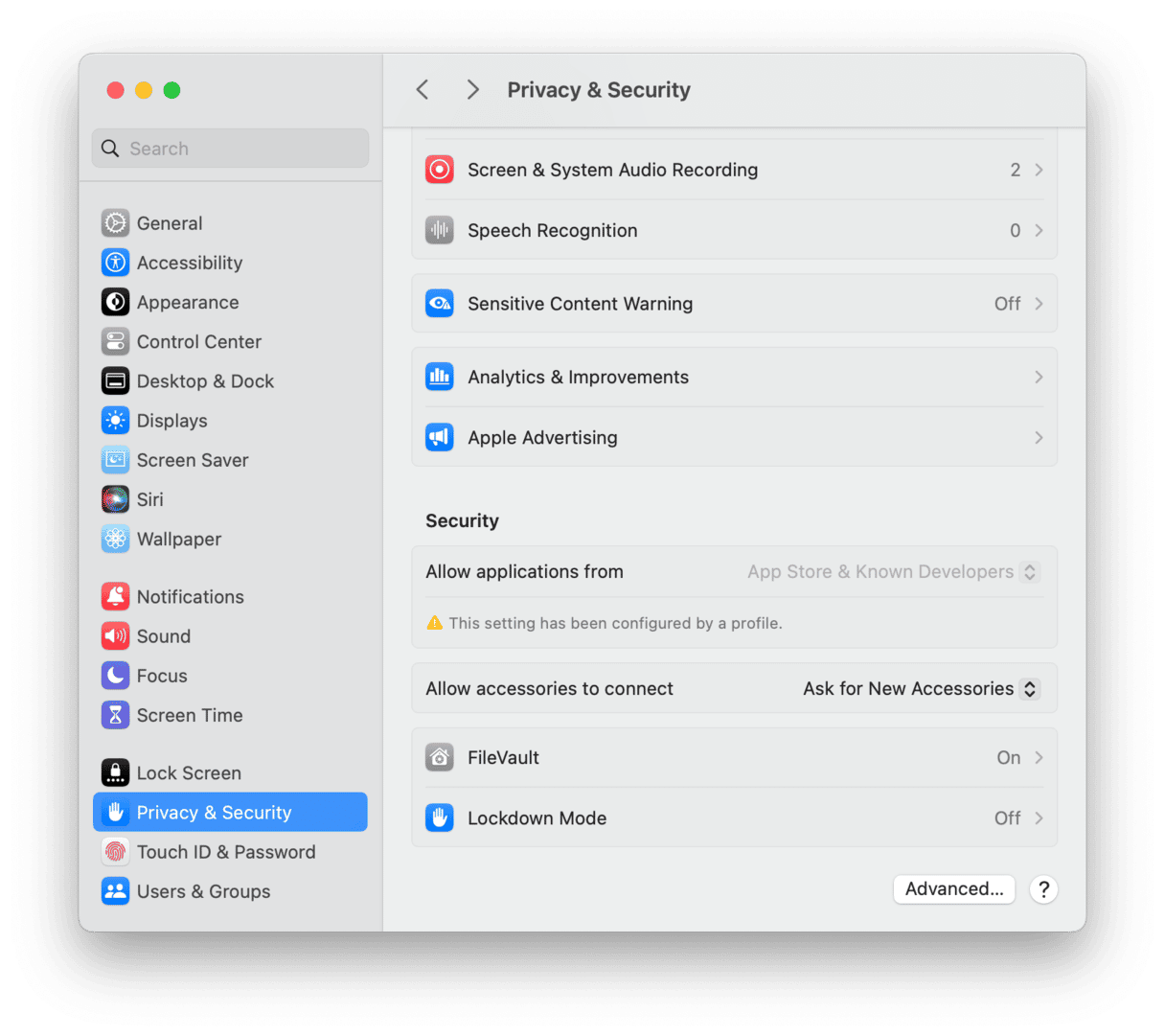 Velg Apple-hovedmenyen > Systeminnstillinger > Personvern og sikkerhet.