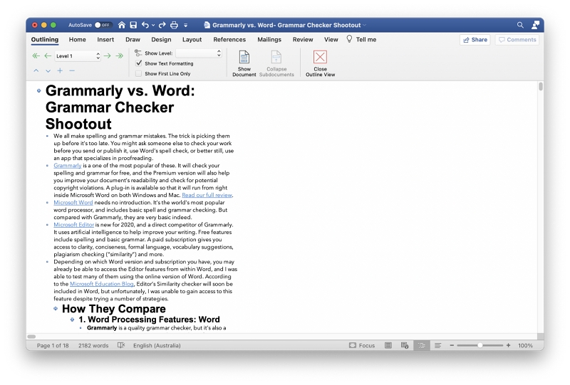 Vinner:Ord. Scrivener er en en-persons app. Word inneholder funksjonene du trenger når du arbeider med en editor. Mange redaktører insisterer på at du skal bruke den.