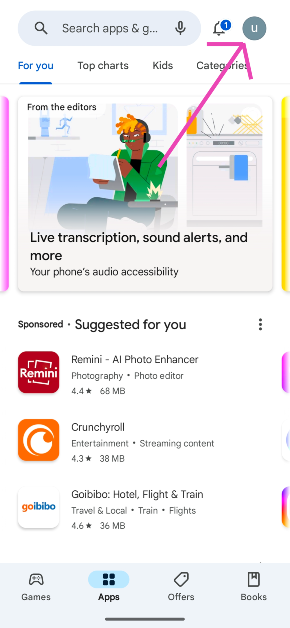 Trinn 2:Trykk på dinprofilikonøverst til høyre på skjermen.