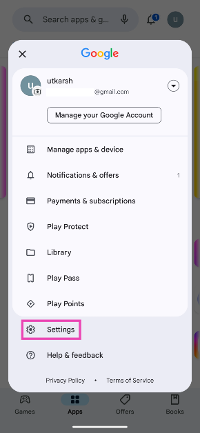 Start Google Play Store, trykk på profilbildet ditt, gå tilInnstillinger>Om, og trykk på "Oppdater Play Store".