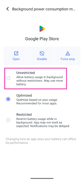 Den automatiske oppdateringsprosessen for apper foregår i bakgrunnen. Hvis du har slått på batterioptimalisering for Play-butikken på telefonen din, kan det pålegge begrensninger for appen, slik at den ikke fungerer i bakgrunnen. Slik kan du deaktivere den.