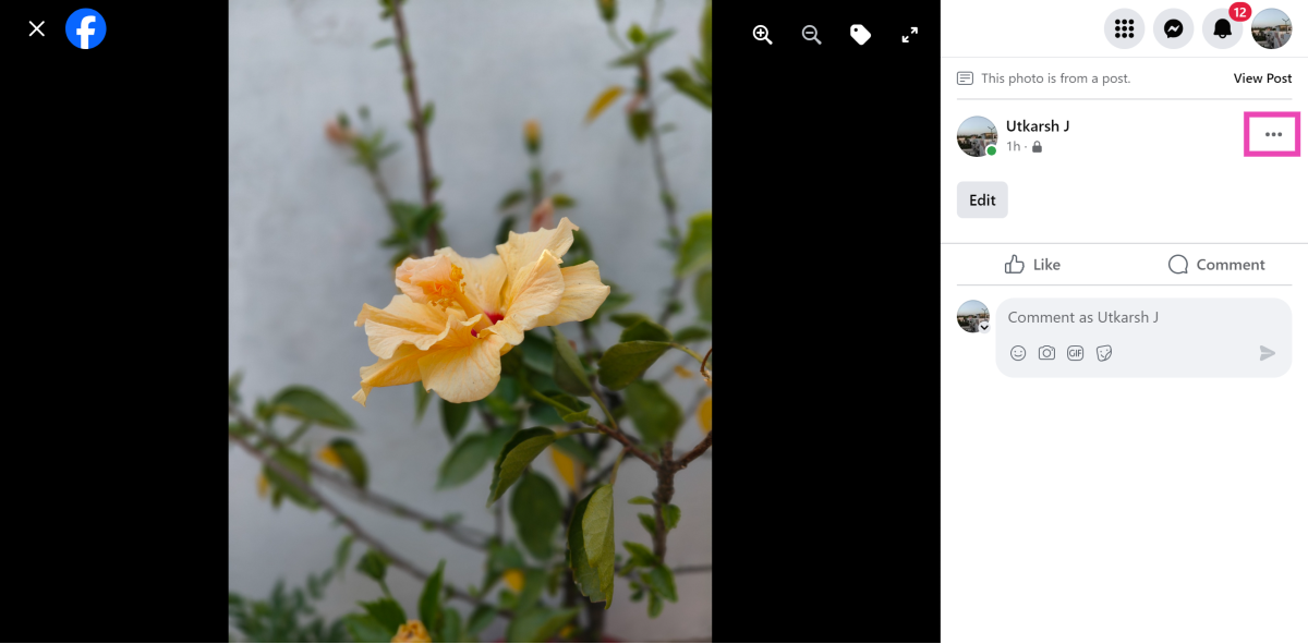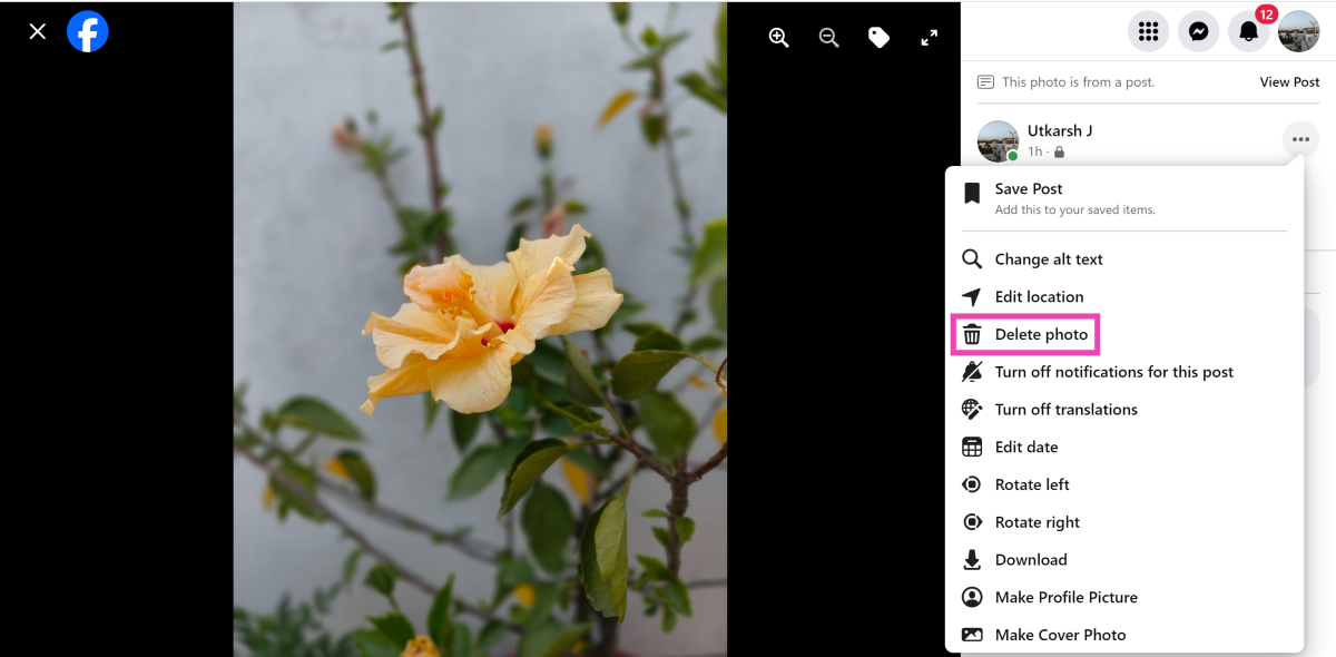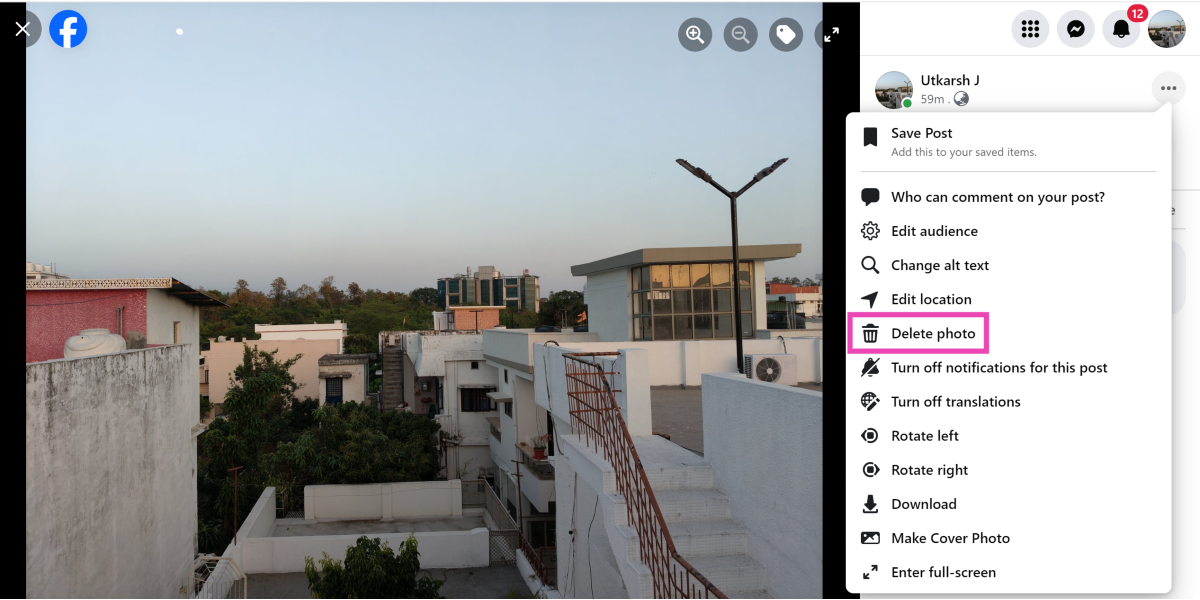 Trinn 1:Gå til Facebook-profilen din og åpnebildedu ønsker å slette.