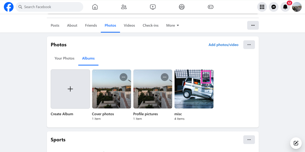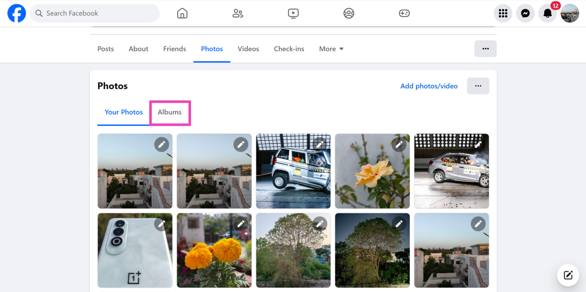 Trinn 1:Gå til Facebook-profilen din og bytt tilBilder-fanen.